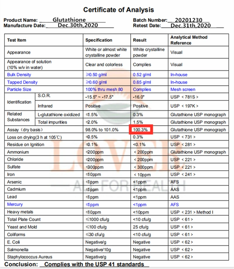 • Ingredient: Glutathione Powder